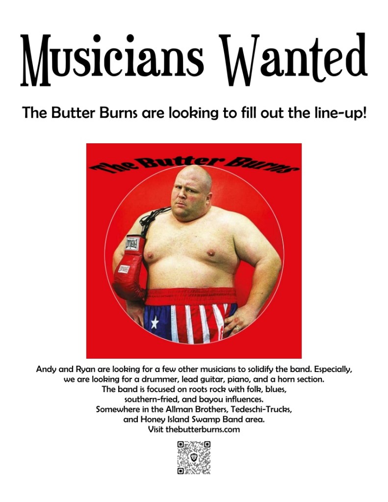 Contact the band – thebutterburns@mail.com